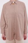 KADIN BROŞLU ÇİZGİLİ KETEN TESETTÜR GÖMLEK - Image 1