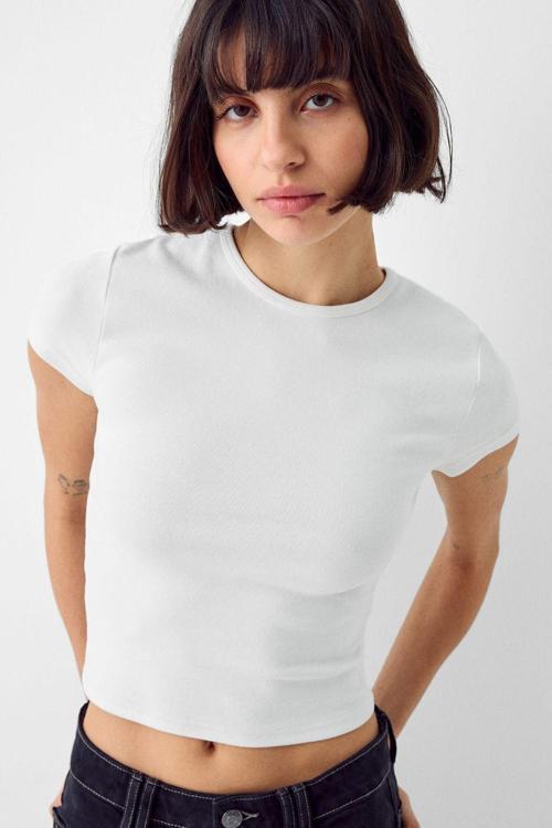 Basic siluetiyle her gardıropta yerini alacak şekilde tasarlanmış beyaz bisiklet yaka body, günlük kullanım için idealdir.
