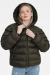 Haki İçi Kürklü Kalın Su Geçirmez Kapişonlu Şişme Mont