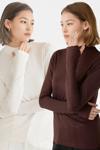 Banega Kadın Kahverengi Parmak Detaylı Yarım Balıkçı Yaka Pamuk Viskon Body - Image 1