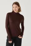Banega Kadın Kahverengi Parmak Detaylı Yarım Balıkçı Yaka Pamuk Viskon Body - Image 1
