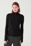 Yumuşak dokusuyla dikkat çeken parmak detaylı dik yakalı bluz, orta kalınlıkta kumaşı sayesinde mevsim geçişlerinde ideal bir tercih olur