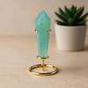 Metal stand üzerinde sergilenen Vogel kesim florit taşı, hem şık bir dekoratif obje hem de doğal taş severler için koleksiyonluk bir parçadır.