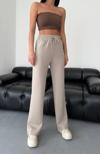 Kadın Taş Keten Yırtmaçlı Yüksek Bel Palazzo Pantolon - Image 1