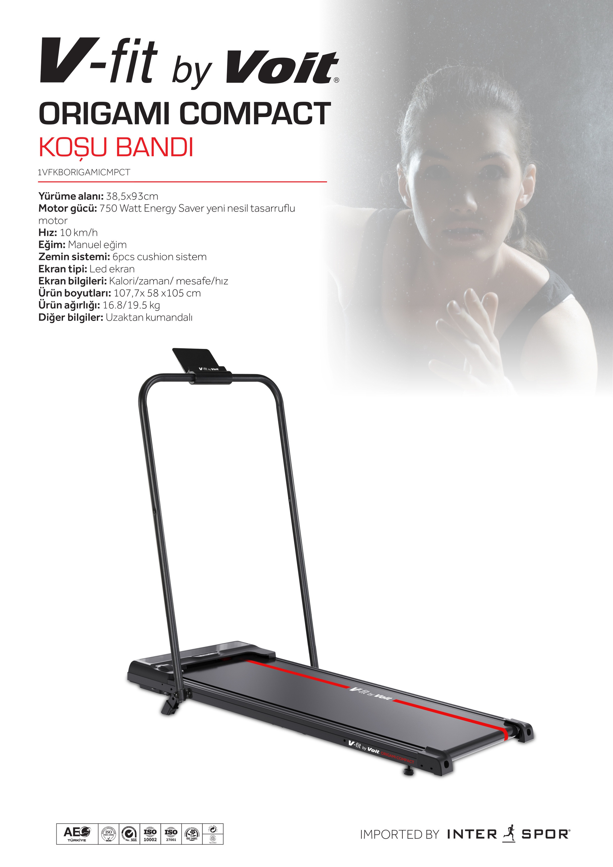 Ev tipi kullanım için ideal olan Voit Origami Compact Koşu Bandı, 90 kg taşıma kapasitesi ve kompakt ölçüleriyle küçük alanlar için mükemmel bir çözümdür.