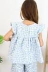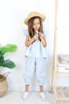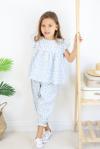 Minik prenseslerin gardıroplarına renk katacak bu şık volan kollu ikili takım ile tanışın! 2-3 yaş ile 7-8 yaş aralığındaki çocuklar için özel olarak tasarlanmış bu takım, hem mavi hem de pembe renk seçenekleri ile sunulmaktadır.