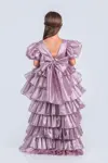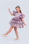 Riccotarz Kız Çocuk Omzu Açık Göğsü Fırfırlı Çiçek Detaylı Mor Abiye