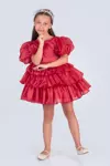 Vestitino Kız Çocuk Abiye Elbise Karolin Kumaş Gül Aksesuarlı