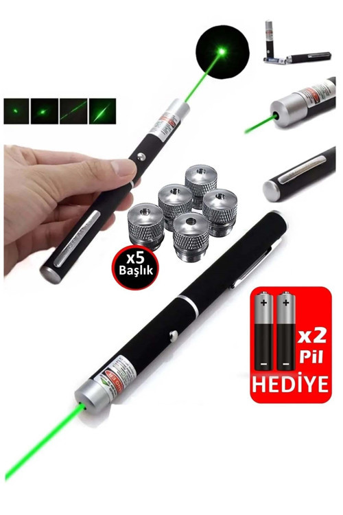 Volemi V-008 Ultimate 5 Başlıklı Yeşil Lazer Pointer 2 Adet Pil Hediyeli Cep Boy Lazer