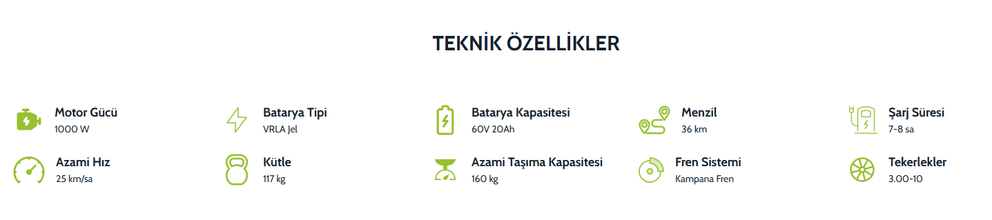 60V 20Ah VRLA Jel bataryası ve 1000W motor gücü, APEC APM5’i şehir içi işlerinizde etkili bir yardımcı haline getirir. 36 km’ye kadar menzil ve 25 km/h azami hız kapasitesiyle hem zaman kazanır hem de enerji tasarrufu sağlarsınız. Elektrikli motor teknolojisiyle, çevreye duyarlı ve ekonomik bir ulaşım deneyimi yaşarsınız.