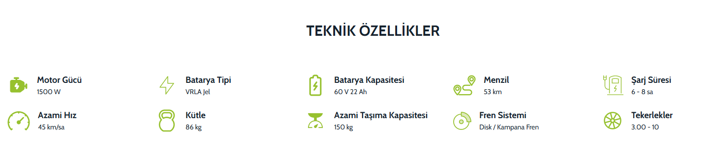 1500W motor gücü, dik yokuşlar ve zorlu yol koşullarında bile üstün bir performans sağlar.