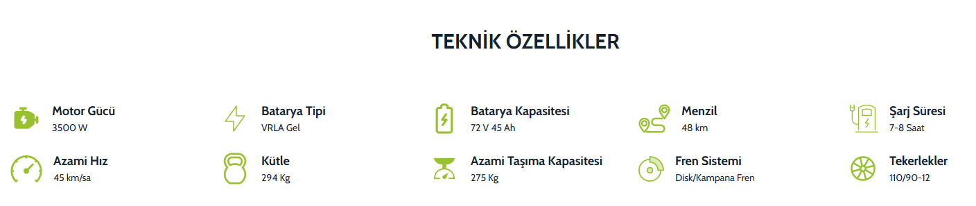 3500W motor gücü, zorlu yol koşullarında ve ağır yük taşırken bile üstün bir performans sağlar.