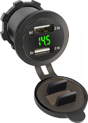 Voltmetreli USB Portu 4.2A 12V 24V Yeşil Led Işıklı