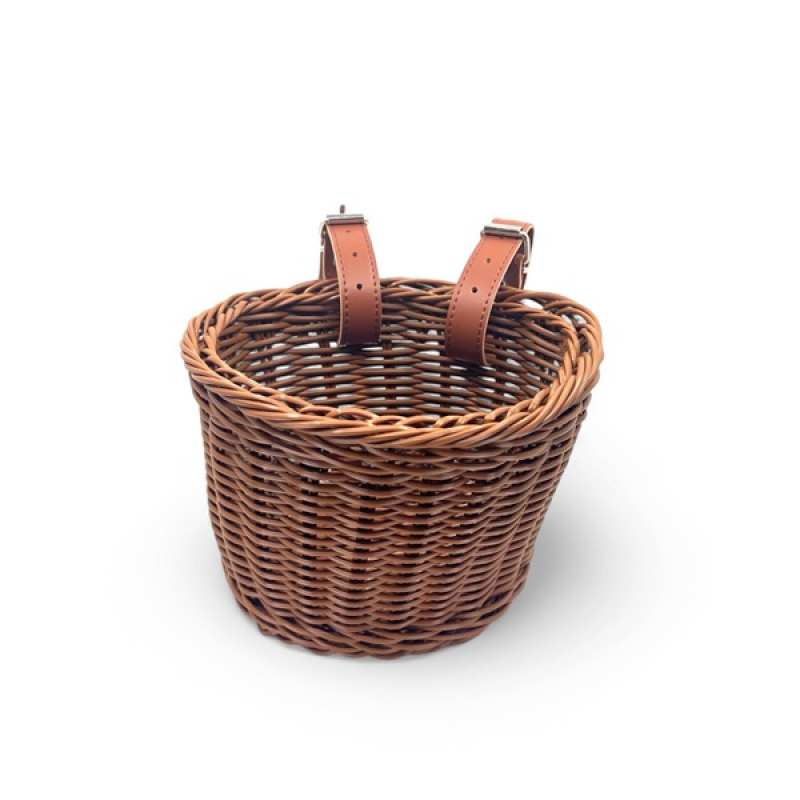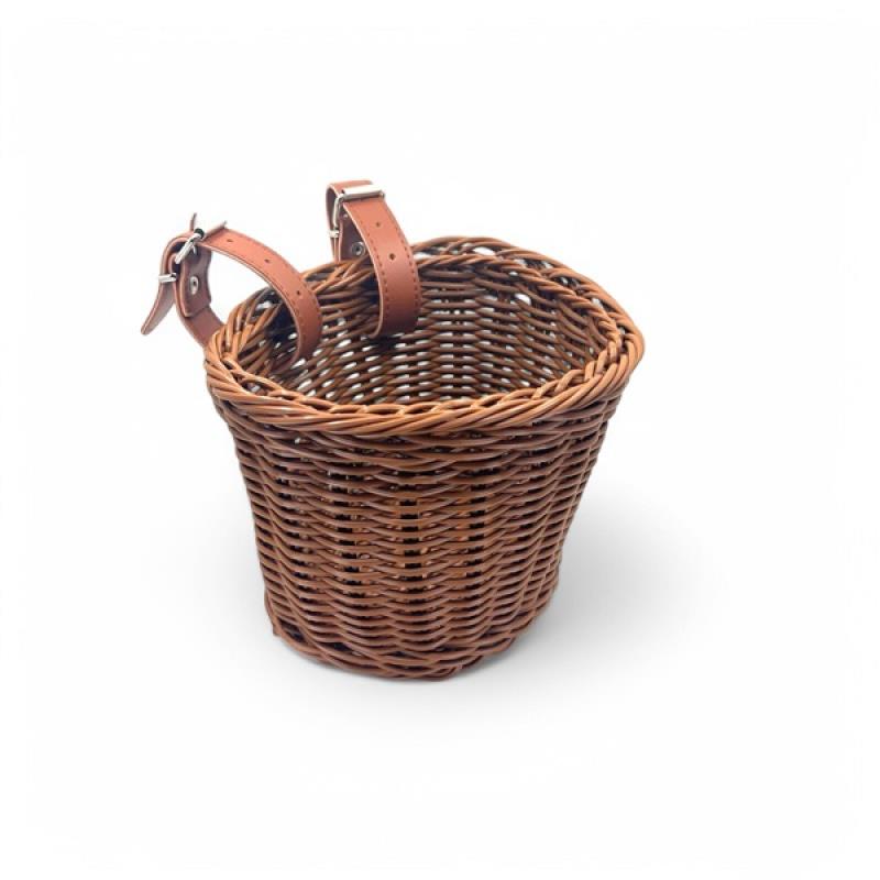 Vona C7004 Hasır Örgü Çocuk Bisikleti Ön Sepet Plastik 16-20 Jant Uyumlu Bisiklet Sepeti Kahverengi