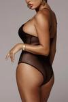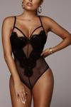 Ürün tek parça mayo biçimidir. Siyah renk, dantelli ve arka kısmı transparan oldukça iddialı ve çekici kadın iç çamaşırı takımı.