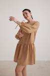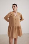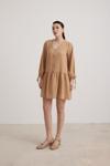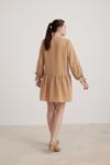 Vos Versa Kadın Kol Bağlama Detaylı Kadın Keten Camel Elbise VVK7260