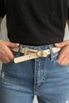 Tina İstanbul Gold Kilit Tokalı Dikişli Kemer 2cm Gri