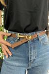Uzun Tasarım Gold Tokalı Taba İnce Kadın Kemeri VOSDK0214101