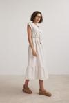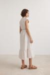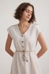 Vos VersaKadın Keten Düğmeli Bağlama Detaylı Taş Elbise VVK7092