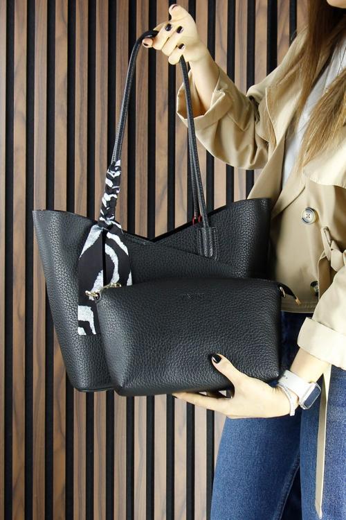 Erkan Saçmacı (VSN3094OCV) Siyah Vegan Manyetik Kapaklı Büyük Boy Günlük Omuz Çantası ve Askılı El Çantası
