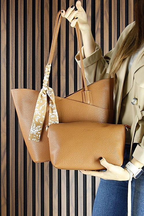 Erkan Saçmacı (VSN3094OCV) Taba Vegan Manyetik Kapaklı Büyük Boy Günlük Omuz Çantası ve Askılı El Çantası