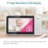 [5 inç Yüksek Çözünürlüklü LCD Ekran] - Evinizin herhangi bir odasından Yüksek Çözünürlükte 5" ebeveyn ünitesiyle küçük çocuğunuzu kontrol edin.
