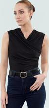 Polyester ve elastan karışımı kumaş, yumuşaklığı ve esnekliği bir araya getirir. Vücut hatlarınızı saran kalıbı, rahatlığı ve şıklığı bir arada sunar. Büzgü detayı, bluza dinamik ve modern bir görünüm kazandırır. Kolsuz tasarımı, yaz aylarında serin kalmanıza yardımcı olur. Bakımı oldukça kolaydır, makinede yıkanabilir ve düşük ısıda ütülenebilir. Zamandan tasarruf etmenizi sağlayacak pratik bir seçimdir.