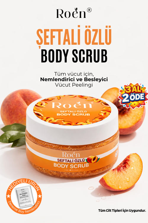 Roen Vücut Peeling, Yoğun Nem Desteği, Batık, Karartı, Leke, Arındırıcı Tropik Şeftali Özü Scrub 250 ml
