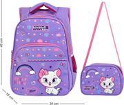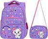 Çocukların okula dönüş heyecanını artıran lisanslı lila kedi desenli sırt çantası, hem şık hem de eğlenceli bir tasarıma sahip