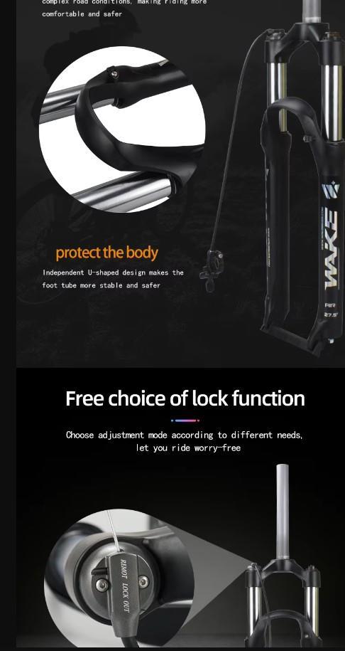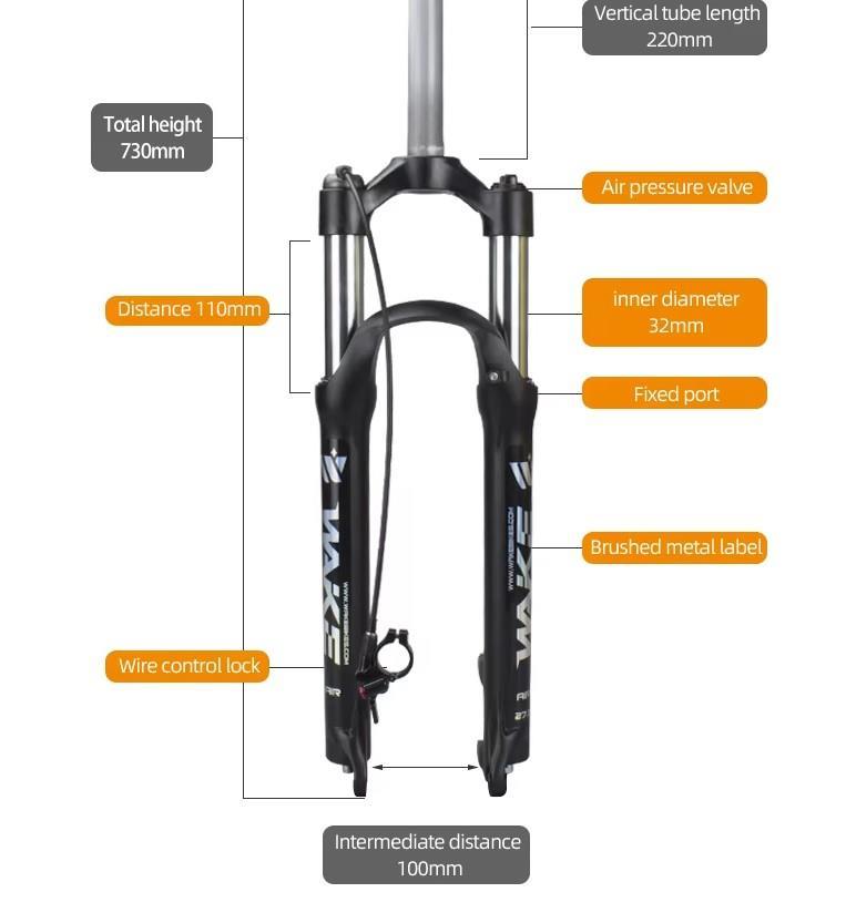 WAKE 26" Jant Gidondan Kilitlenebilir Bisiklet Maşası 1-1/8 QR Alüminyum Amortisörlü Maşa Disk Fren