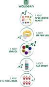 Yılbaşı Çam Ağaç Seti 5Metre Peri Led Işıklı Ve Yılbaşı Süsleri Paketi, ; Kar Spreyi 1 adet 150 ml ; 12 ADET KARIŞIK SÜS PAKETİ ; 1 adet Sim Süs (Renkleri karışık çıkmaktadır.) ; 5 Metre Peri Led