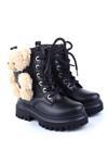 Walkenzo 4182 Ayıcıklı Fermuarlı Kaymaz Taban Kız Çocuk Bot