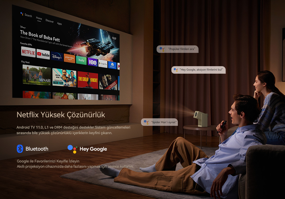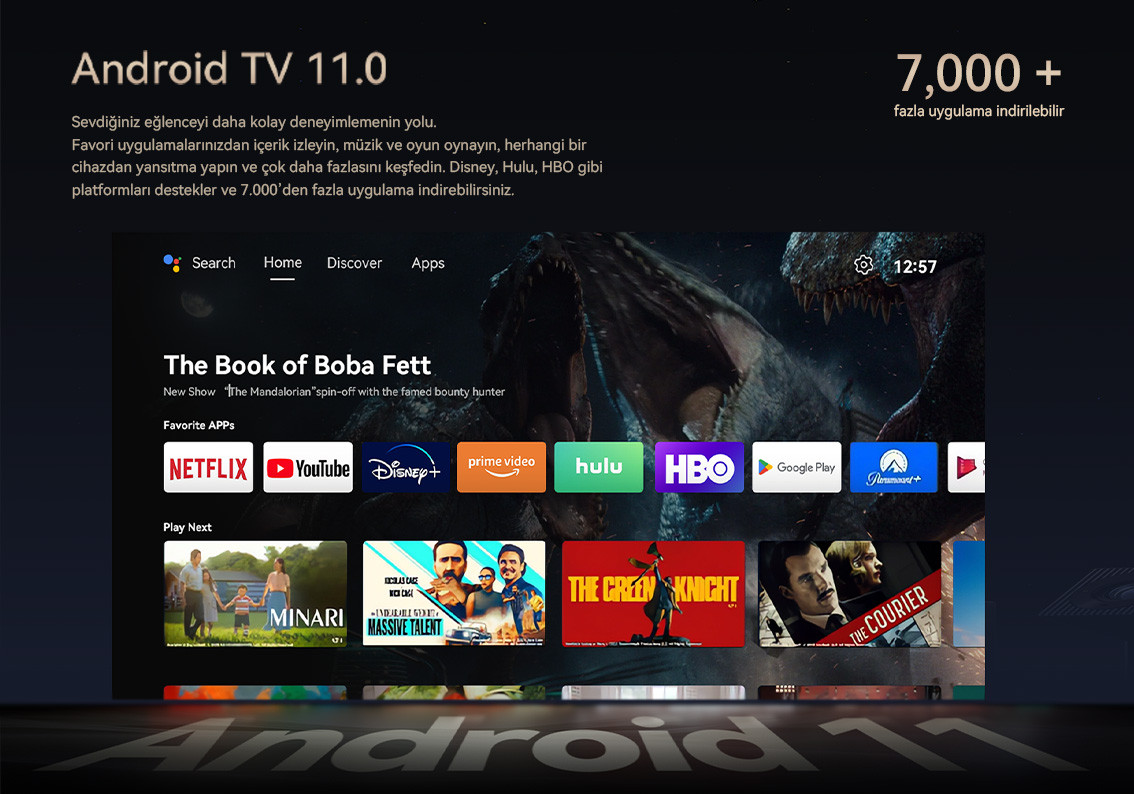 · Android TV 11 İşletim Sistemi: Cihaz, tam teşekküllü bir Android TV ile gelir. Bu sayede başka bir medya oynatıcıya ihtiyaç duymadan doğrudan Netflix, YouTube, Disney+ gibi uygulamaları indirip kullanabilir, oyun oynayabilir veya internette gezinebilirsiniz. Kullanıcı dostu arayüzü ve Google Play Store erişimi, onu bir "akıllı TV"ye dönüştürür.