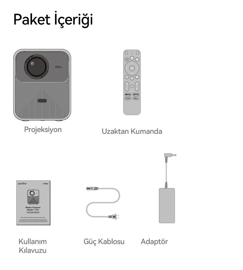 Wanbo Mozart 1 Pro Akıllı Projeksiyon Cihazı – 1200 ANSI, Google TV, HDR, MEMC, Lisanslı | 2025 Yeni Versiyon