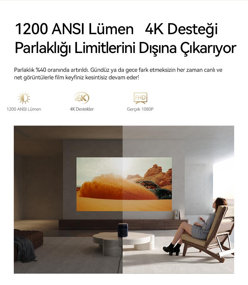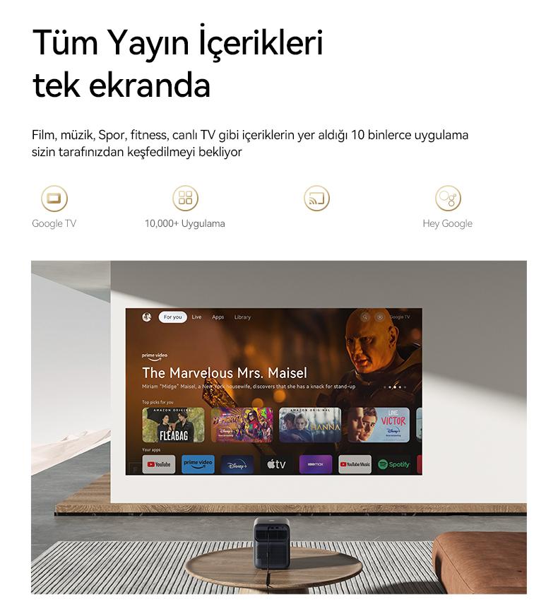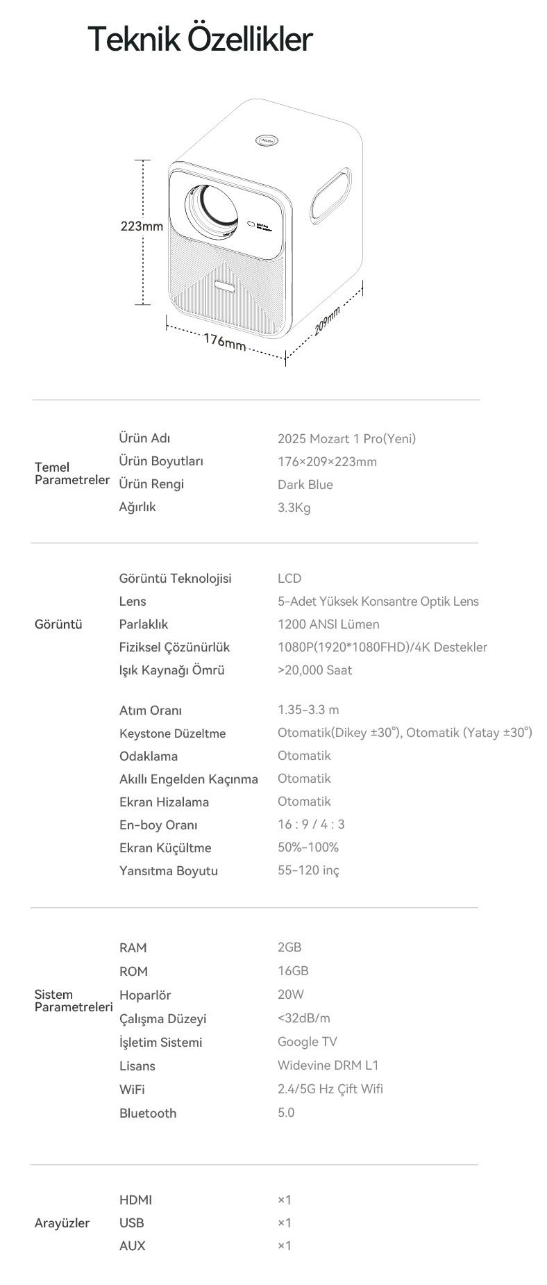 Mozart 1 Pro Akıllı Projeksiyon Cihazı – 1200 ANSI, Google TV, HDR, MEMC, Lisanslı | 2025 Yeni Versiyon