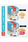 Wanpy 12Li Karışık Yetişkin Kedi Yaş Maması 2 Lezzet Ton & Tavuk Premium Kalite 12 X 70 Gr