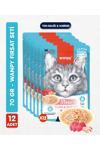 Wanpy 12Li Yetişkin Kedi Yaş Maması Ton Balığı & Karides Premium Kalite 12 X 70 Gr