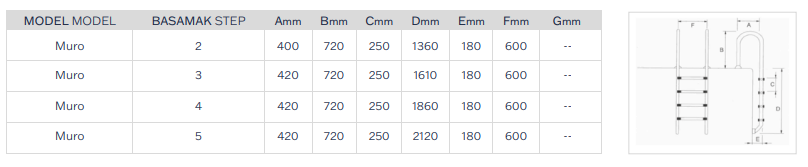 Havuz Merdiveni 2 Basamak Muro U 304 Paslanmaz-Swimming Pool Ladders-ToptancıyızBiz