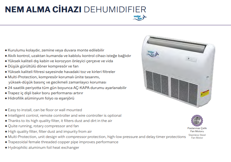 • Multi-Protection, kompresör korumalı ünite tasarımı, yüksek-düşük basınç ve gecikmeli zamanlayıcı koruması