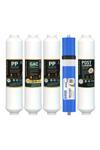 5 aşamalı filtre sistemiyle suyu klor, kireç, tortu ve ağır metallerden arındırarak temiz ve lezzetli hale getirir.; - Set; 5 Mikron Sediment Filtre, GAC karbon, 1 Mikron Sediment Filtre, 80 GPD membran ve coconut post karbon filtrelerden oluşur.; - Ters ozmoz teknolojisiyle %99 oranında arıtma sağlar.; - Kapalı kasa cihazlarla tam uyumludur ve kolay montaj imkanı sunar.; - Filtre değişiminde orijinal set kullanımı cihaz performansını korur ve ömrünü uzatır.; - NSF sertifikalı filtreler güvenli kullanım sağlar.; - Ortalama 6-12 ayda bir düzenli değişim önerilir.; - Water Global üretimi olup, yerli üretim ve garantili ürün olarak sunulmaktadır