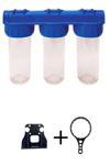 Water Jobs 10" Daire Girişi Üçlü Boş Filtre Kabı / Filtreler Dahil Değildir