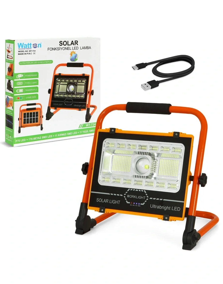 Watton WT-734 P70 LED Solar Panel Şarjlı Taşınabilir Projektör