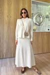 Dalga dokulu, hareketli eteği ve minimal düğmeli yakasıyla modern bir siluet sunan Wave Etekli Merserize Takım, hafif ve serin tutan merserize dokusu sayesinde gün boyu konfor sağlar.