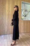 Ka Hijab Kuşak Detay Dökümlü İkili Takım - Siyah