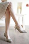 Sindirella taş aksesuarlı modelli fileli stiletto Renk:Altın Dış yüzey ithal malzemeden üretilmiştir Iç yüzey ithal malzemeden üretilmiştir Topuk boyu: 6 cm