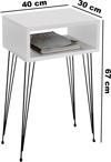 Raflı Komodin & Sehpa Malzeme : 18 mm suntalam Ayaklar metal malzeme Ebatlar Yükseklik: 67 cm Genişlik : 40 cm Derinlik: 30 cm Raf aralığı : 12,5 cm Ürün demonte gelmektedir, kurulum alıcı tarafından yapılmaktadır Maks taşıma kapasitesi 8 kg dır