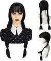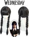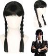 - 1 adet Wednesday Addams Siyah Örgülü Peruk