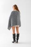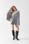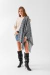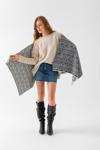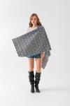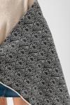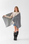 Füme ve beyaz renklerin zarif uyumuyla tasarlanan bu triko omuz şalı, her mevsim stilinizi tamamlar.