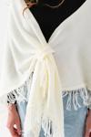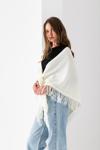 Wega Moda'nın şıklığı ve zarafeti bir araya getiren kadın üçgen püsküllü şalı, stilinize sofistike bir dokunuş katıyor.