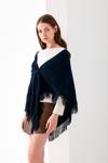 Püsküllü detayları, şala hareketli ve modern bir görünüm kazandırır.